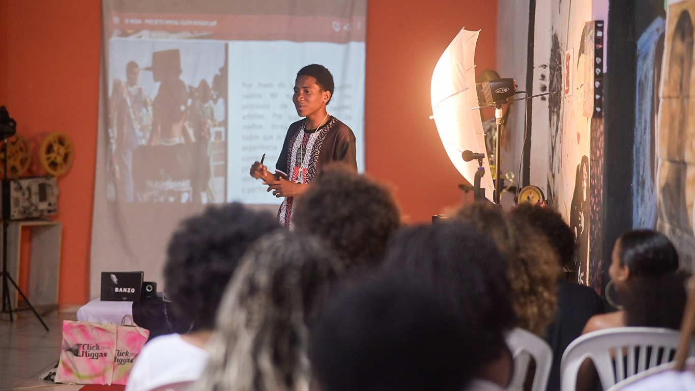 O público-alvo são jovens pretos, visando elaborar uma perspectiva de